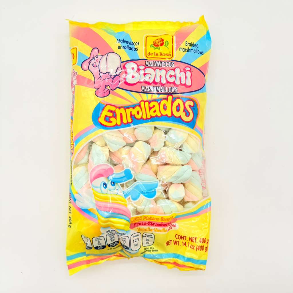 Malvaviscos enrollados combinación de sabores de vainilla, banano y fresa. Tienen una textura suave y esponjosa, con una forma divertida en espiral. Peso Neto: El paquete contiene 400 gramos (14.1 onzas netas).